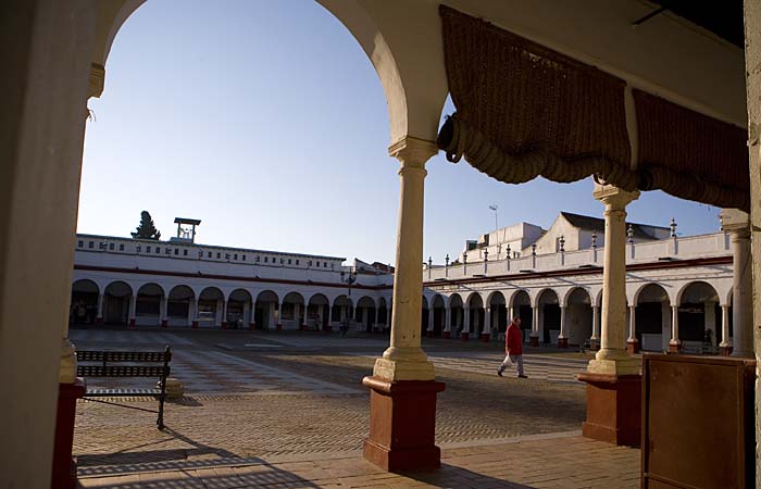Llegamos a la Plaza de España centro neurálgico de vida y bullicio a mediodía y por la noche, cualquier bar será bueno para un primer refrigerio. Hacia la derecha encontraremos la Plaza de Abastos de estilo neoclásico con pórticos y lonjas donde se encuentran los puestos de frutas, verduras y pescados. Si vais por la mañana probar los churros que hacen en un pequeño puesto en un rincón del mercado.